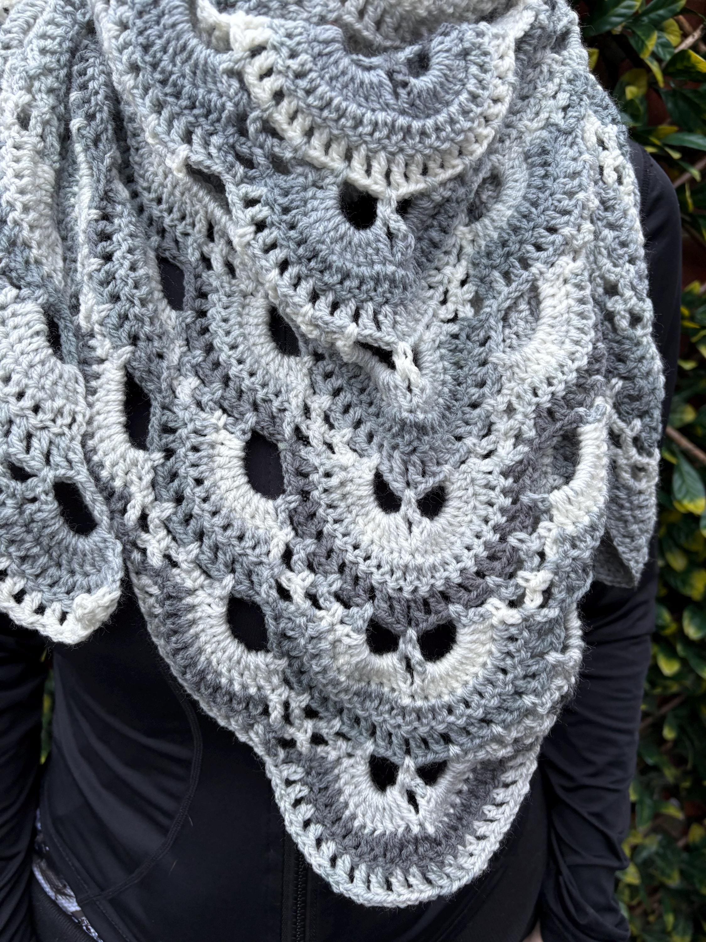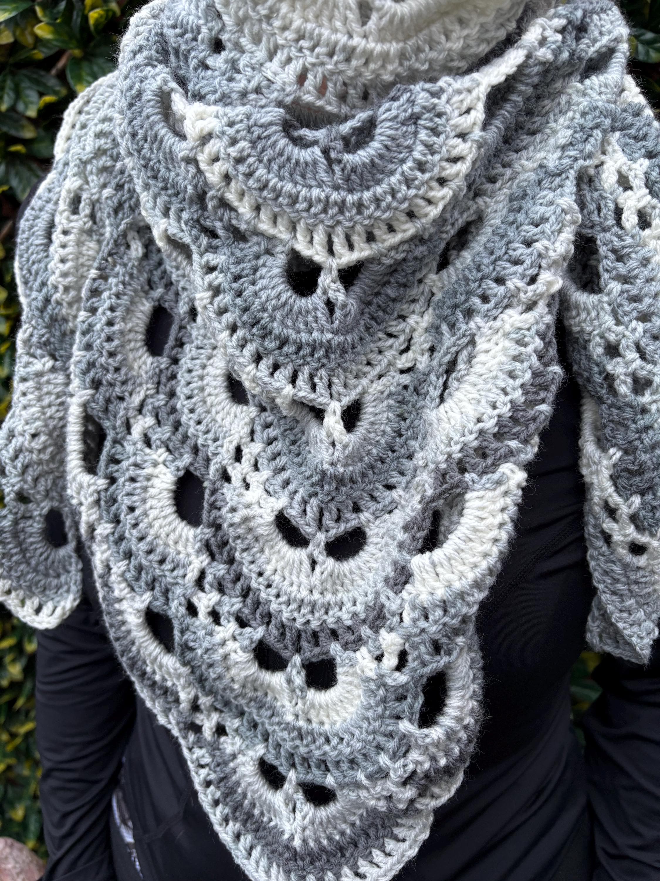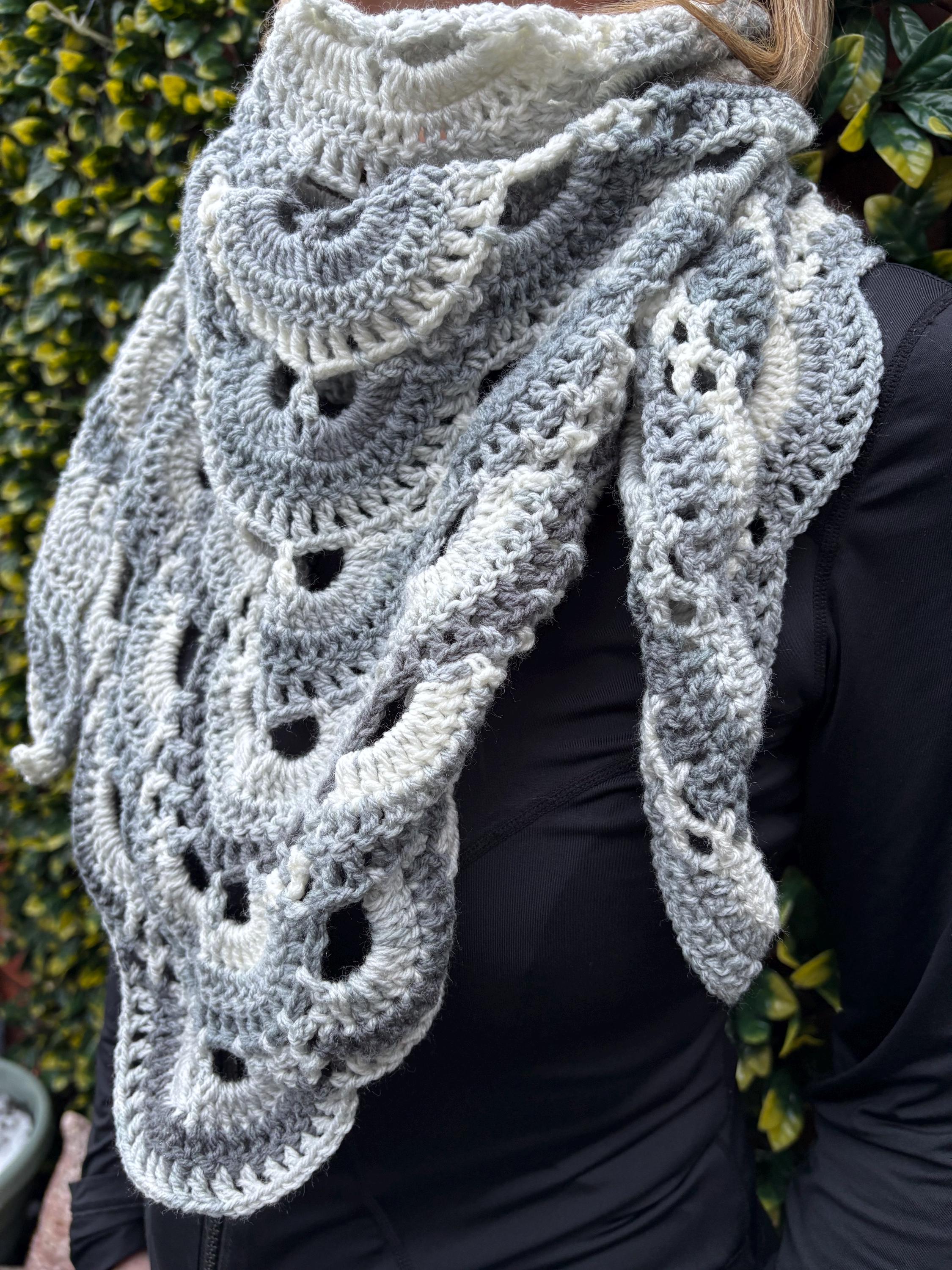 Large triangle scarf/shawl virus pattern large size in greys and cream